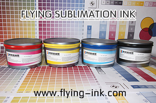 印刷工藝:用膠印機器將升華熱轉(zhuǎn)印油墨印在雙膠紙(銅版紙)上,印出花紙;然后將花紙和布料一起放在熱轉(zhuǎn)印機器內(nèi),加熱180-220℃,加壓,時間15-20S,得出成品(油墨可直接上機使用,不需添加助劑)。